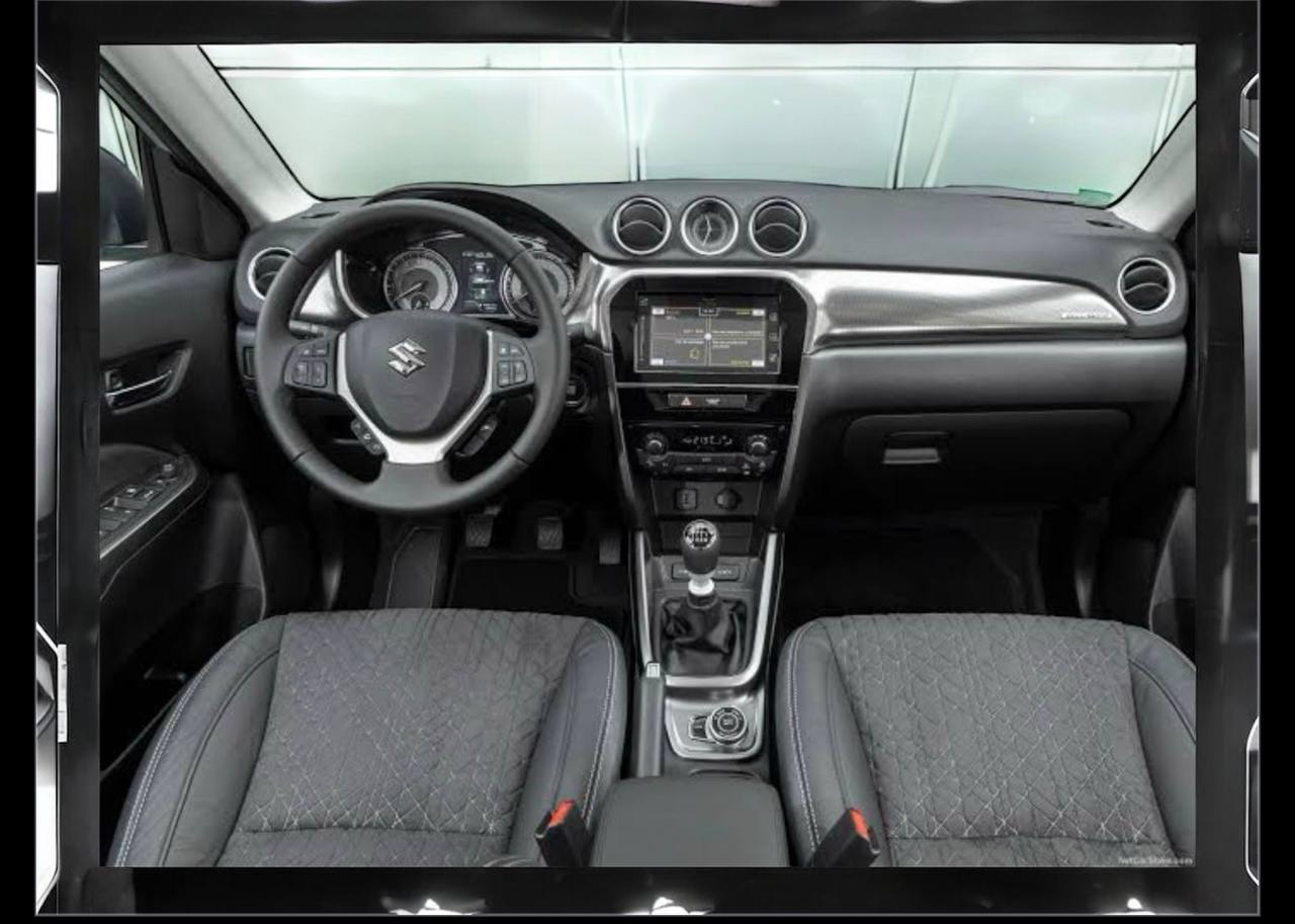 The rugged exterior of the Vitara is enhanced by LED headlights, daytime running lights, and a stylish chrome front grille. Additional features include a double sliding panoramic sunroof, heated door mirrors, electric windows, and rain-sensing wipers.